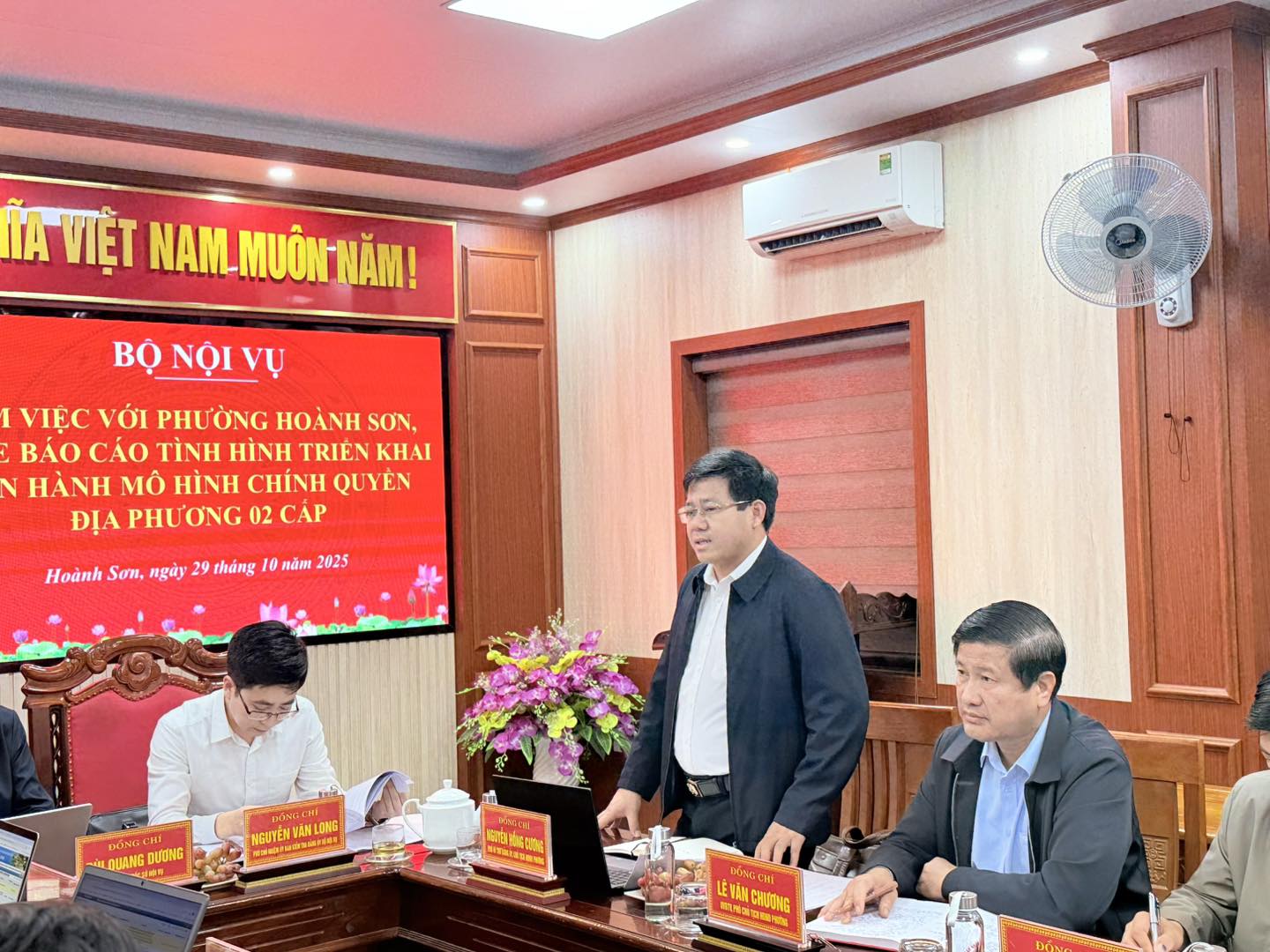 Tại buổi làm việc, đồng chí Nguyễn Hồng Cương, Chủ tịch UBND phường Hoành Sơn, đã trình bày báo cáo chi tiết về tình hình triển khai và kết quả bước đầu trong việc vận hành Mô hình Chính quyền địa phương hai cấp. Báo cáo đã làm rõ những kết quả đạt được sau thời gian triển khai mô hình: