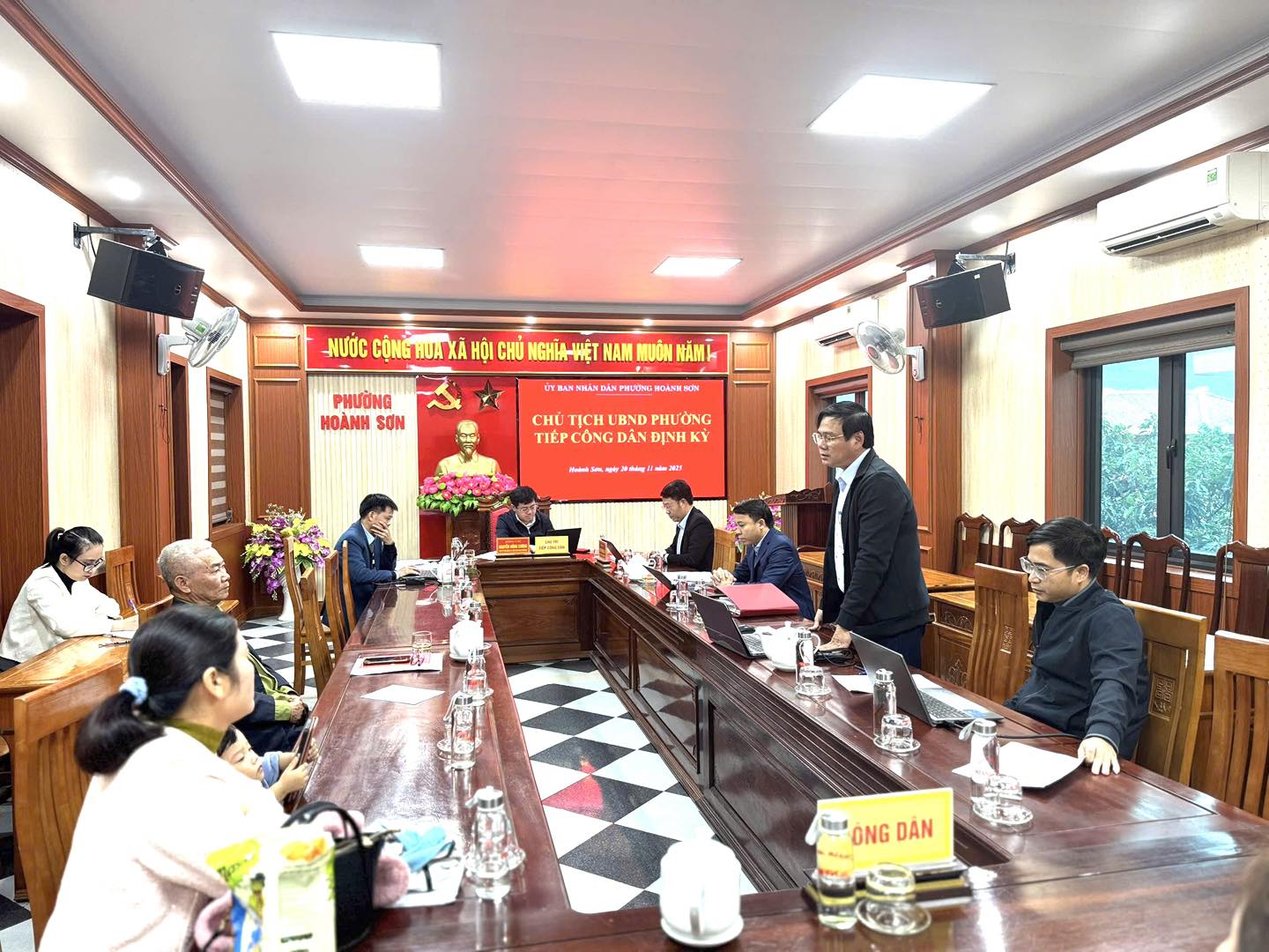 Trong buổi làm việc, đồng chí Chủ tịch UBND phường Nguyễn Hồng Cương đã tiếp đón 02 công dân trên địa bàn phường có đơn thư kiến nghị liên quan đến các vấn đề cụ thể tại khu dân cư Hoành Nam. Các kiến nghị của công dân đã được lắng nghe cặn kẽ, tập trung vào những vướng mắc phát sinh trong thực tiễn.