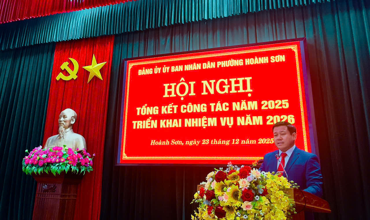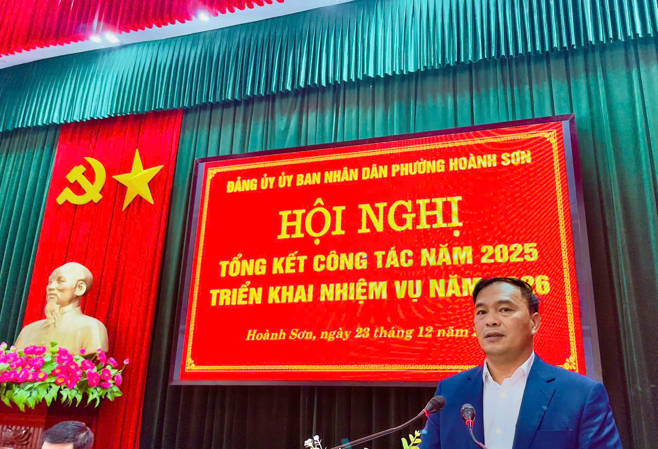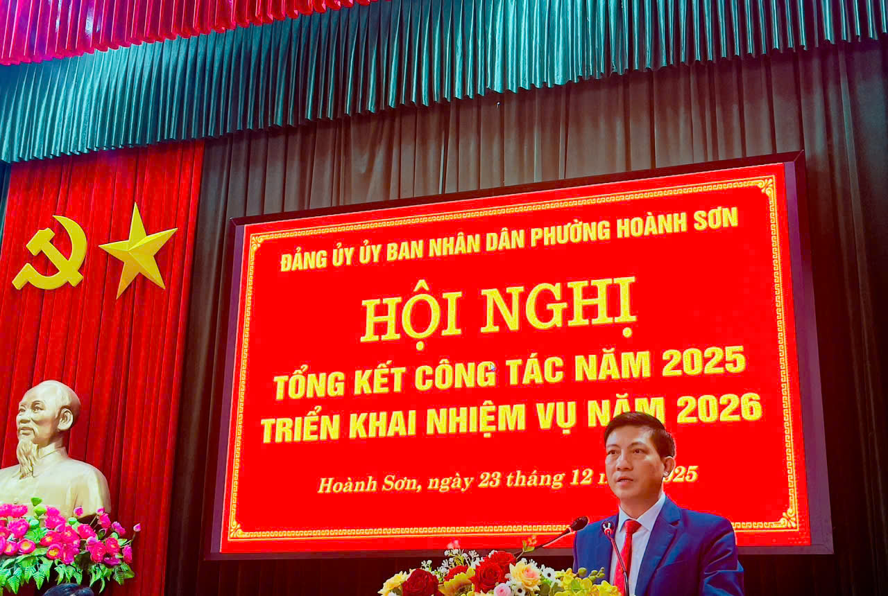Hội nghị tổng kết công tác năm 2025, triển khai nhiệm vụ năm 2026 của Đảng ủy UBND phường Hoành Sơn diễn ra nghiêm túc, dân chủ, trách nhiệm, tạo khí thế thi đua sôi nổi, quyết tâm thực hiện thắng lợi nhiệm vụ năm 2026, góp phần thực hiện hiệu quả Nghị quyết Đại hội Đảng bộ phường nhiệm kỳ 2025 - 2030.