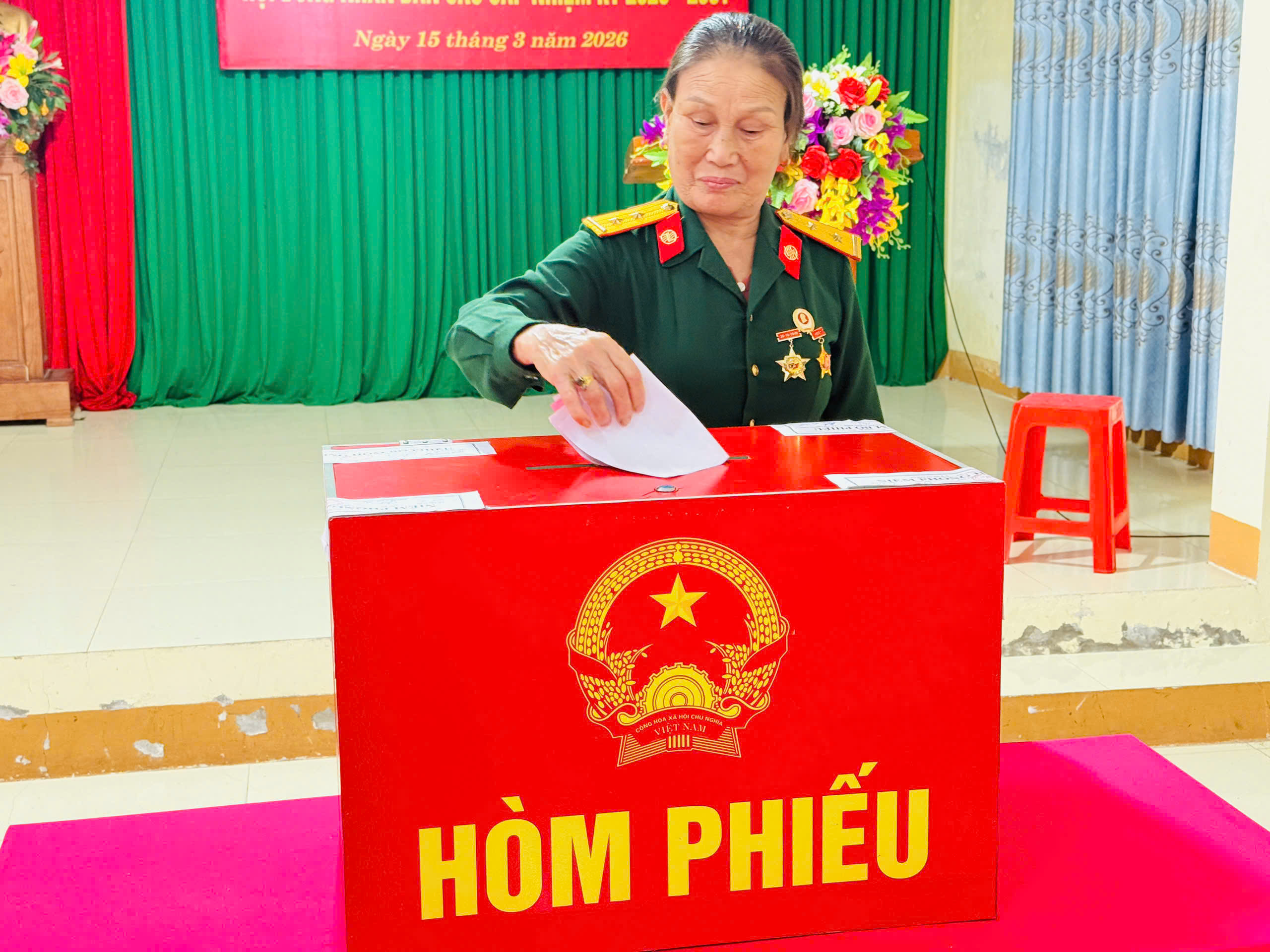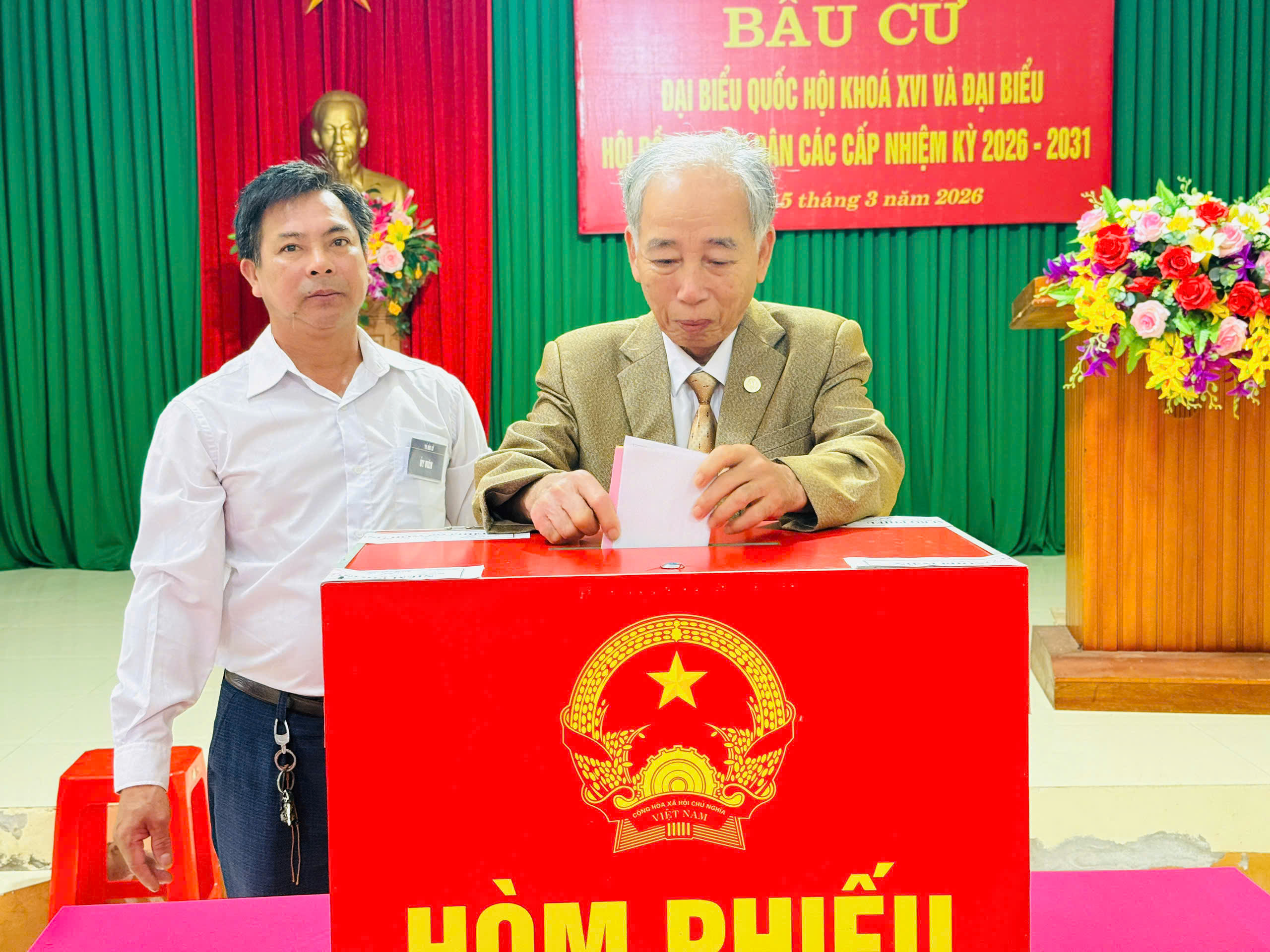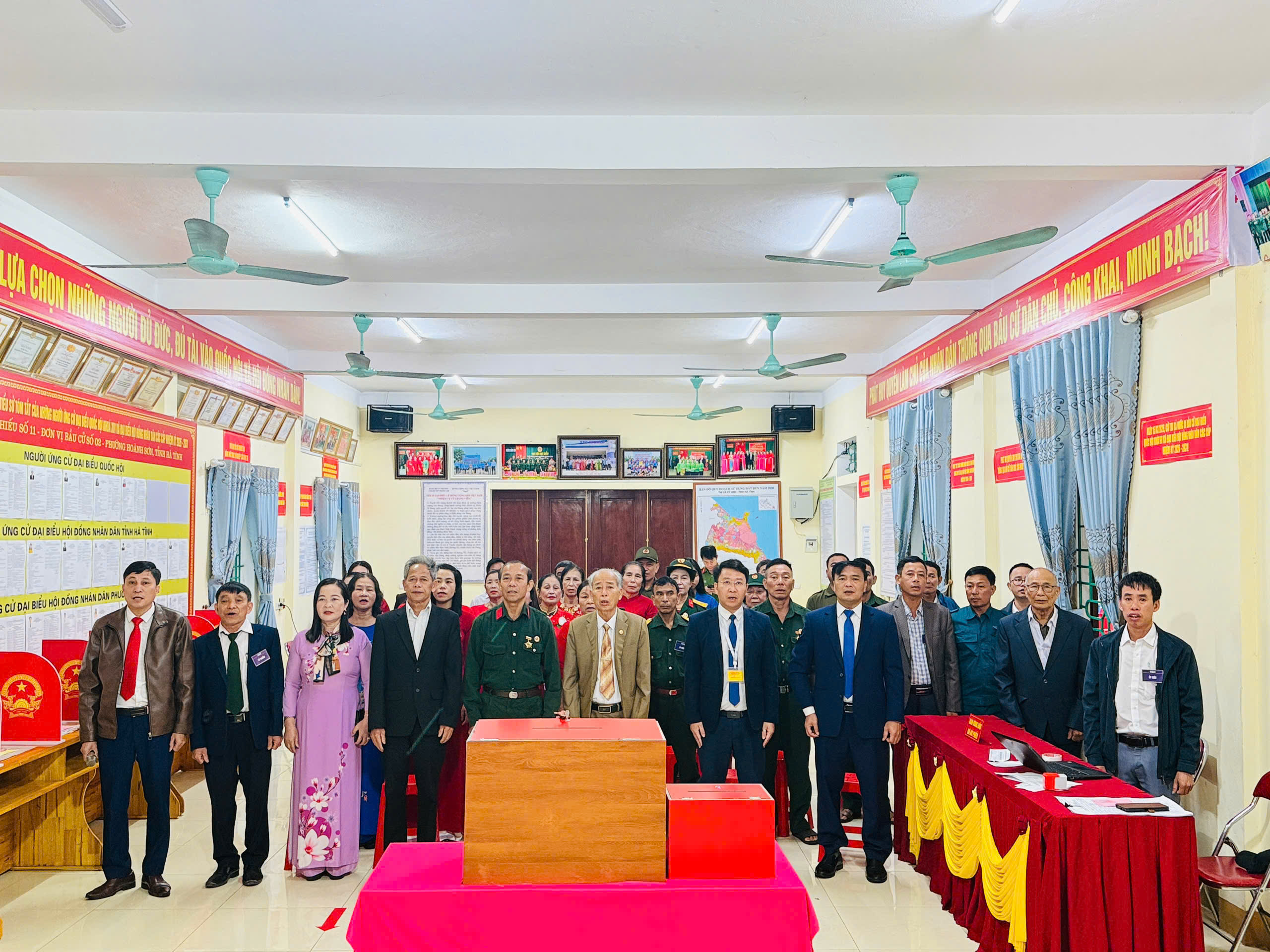 Đồng chí Nguyễn Quốc Hương - Bí thư Đảng ủy - Chủ tịch HĐND phường tham dự khai mạc bầu cử đại biểu Quốc hội khóa XVI và đại biểu HĐND các cấp nhiệm kỳ 2026 - 2031 tại khu vực bỏ phiếu số 16 Khu vực Đông Yên cũ (phường Hoành Sơn)