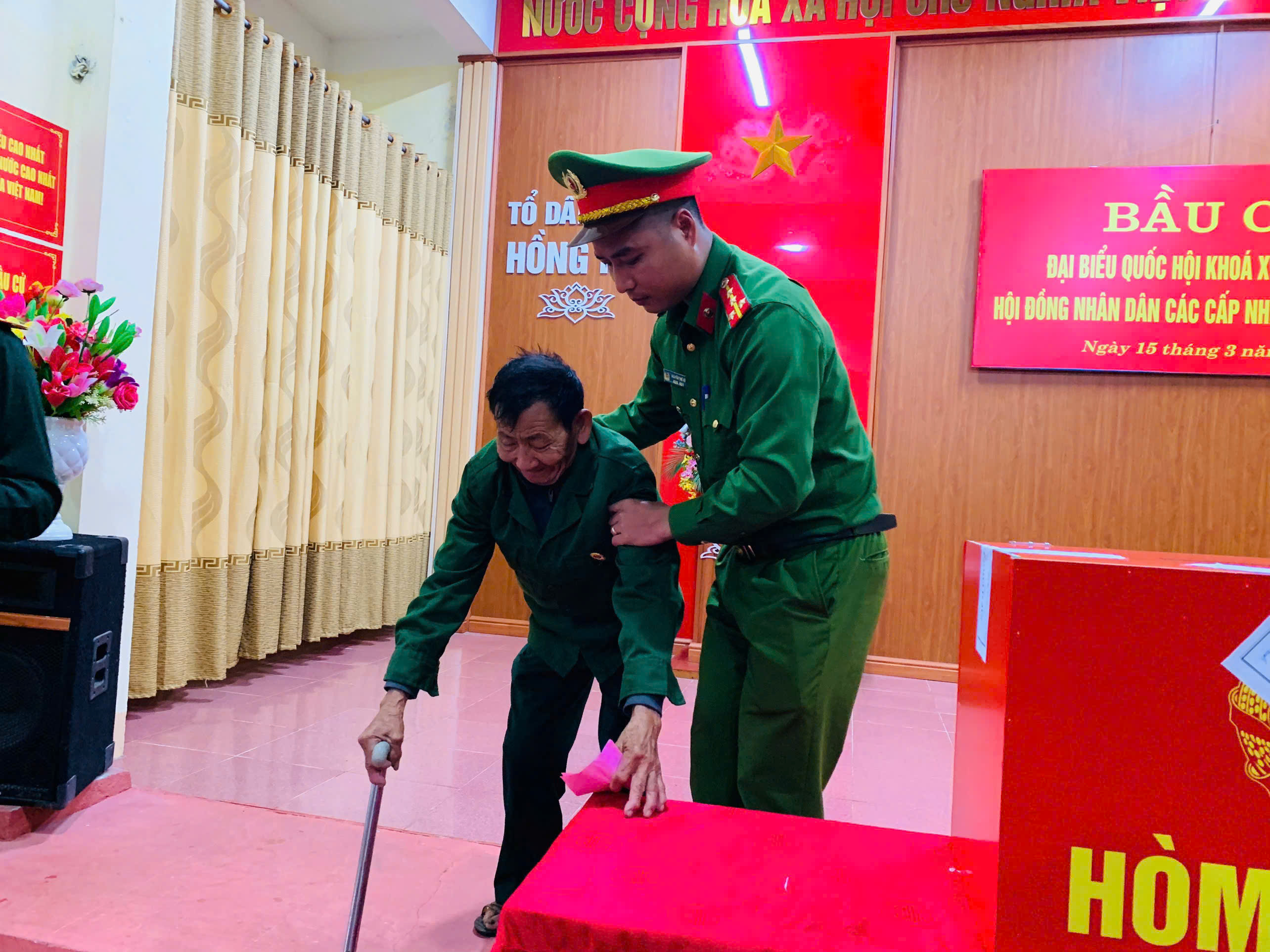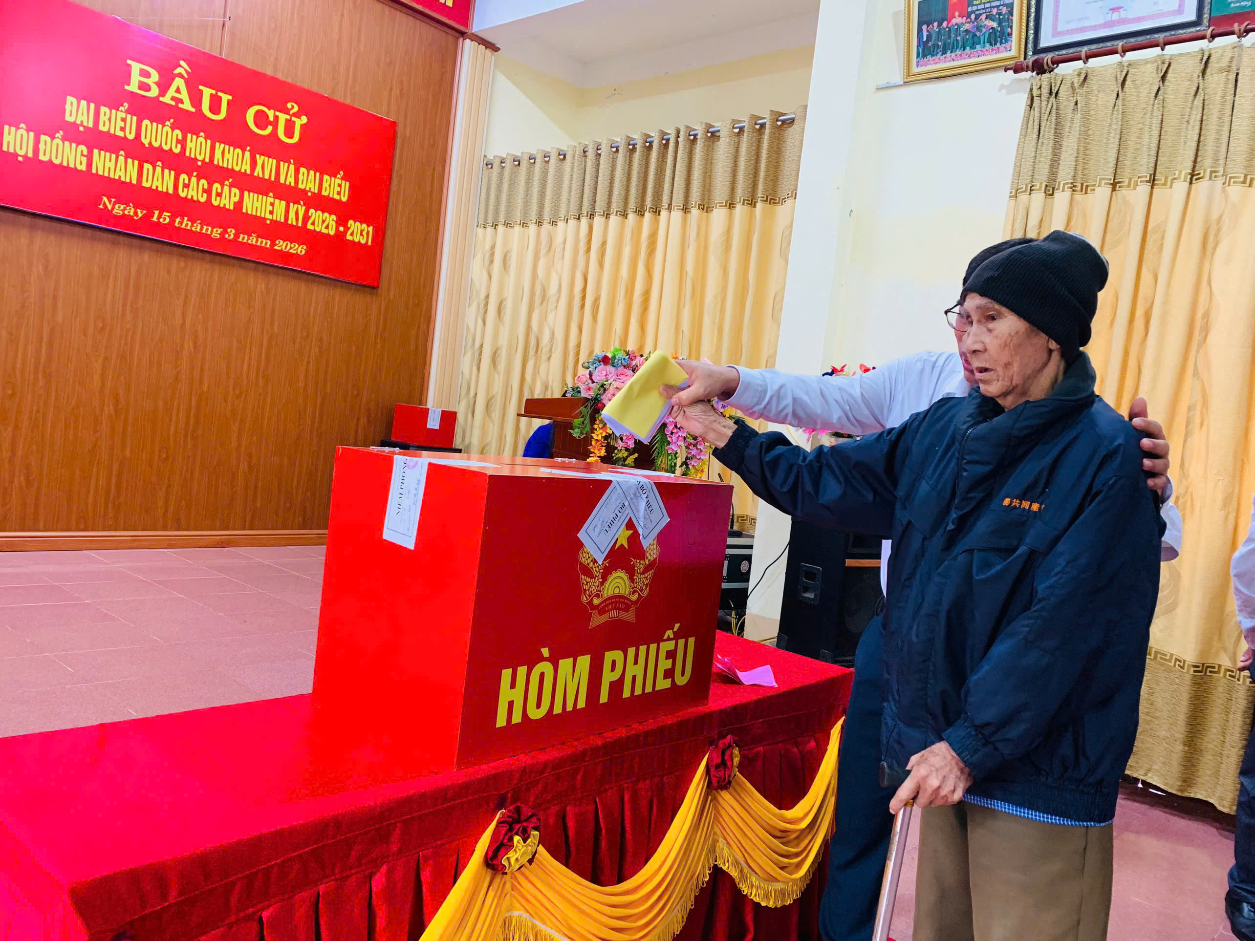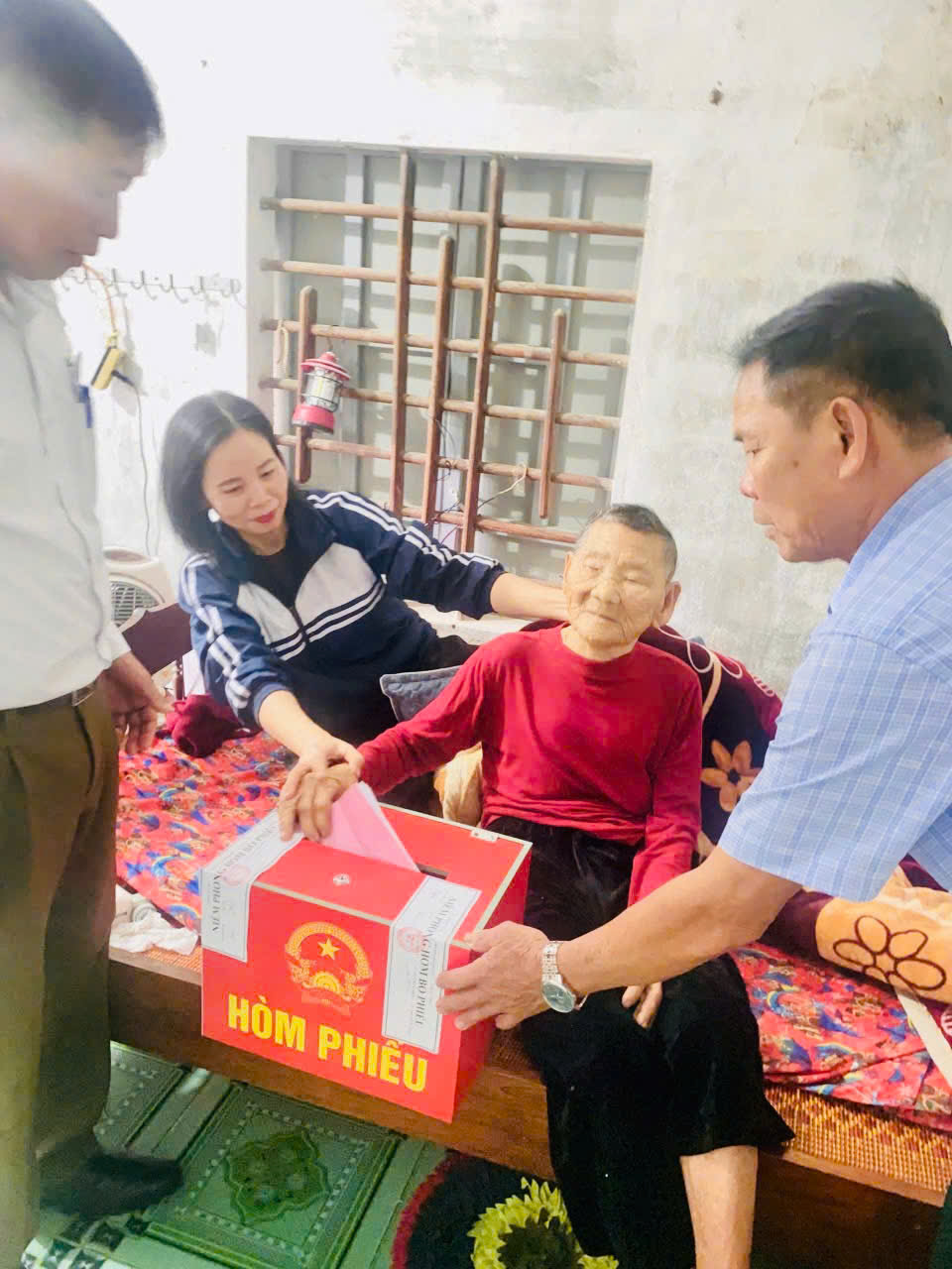 Hòm phiếu phụ được di chuyển về tại nhà riêng của mẹ Bùi Thị An - Mẹ Liệt sỹ (100 tuổi đời) tại TDP Tân Thành, phường Hoành Sơn