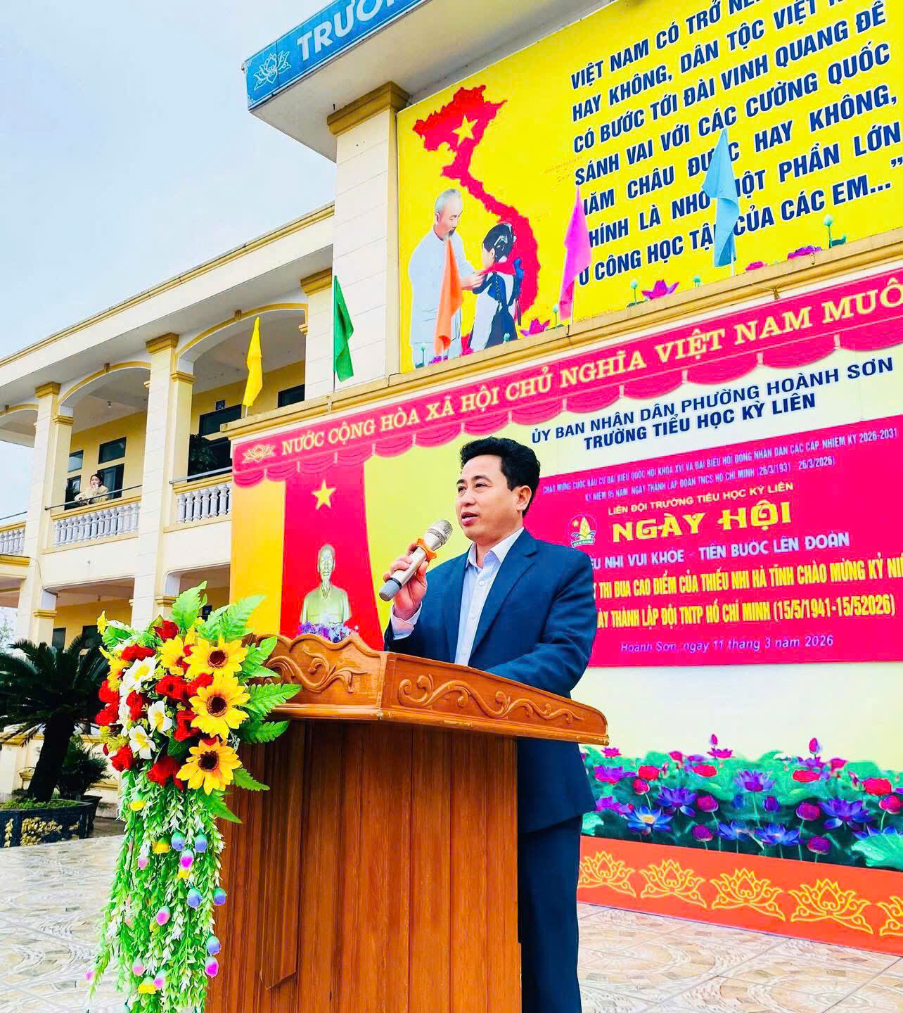 Tham dự và chung vui ngày hội cùng các em học sinh có thầy giáo Trần Đình Toàn - Bí thư chi bộ - Hiệu trưởng trường Tiểu học Kỳ Liên cùng các thầy cô giáo trong toàn trường.