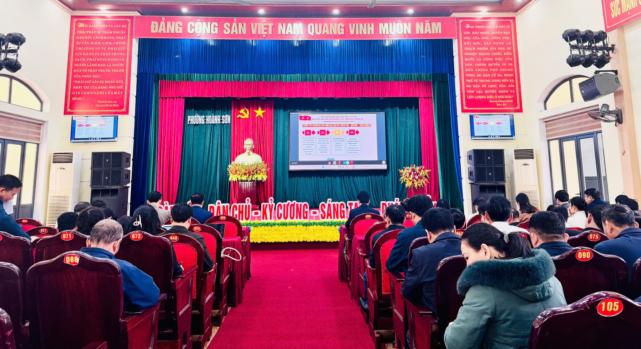 Tại hội nghị, đại biểu các điểm cầu trong cả nước nói chung và phường Hoành Sơn nói riêng được nghe đồng chí Nguyễn Thị Thu Hà - Ủy viên Ban Chấp hành Trung ương Đảng, Phó Chánh Văn phòng Thường trực Văn phòng Trung ương Đảng trình bày Thông báo nhanh kết quả Đại hội đại biểu toàn quốc lần thứ XIV của Đảng, với nhiều điểm mới trong quá trình chuẩn bị Đại hội XIV và nội dung, kết quả Đại hội.