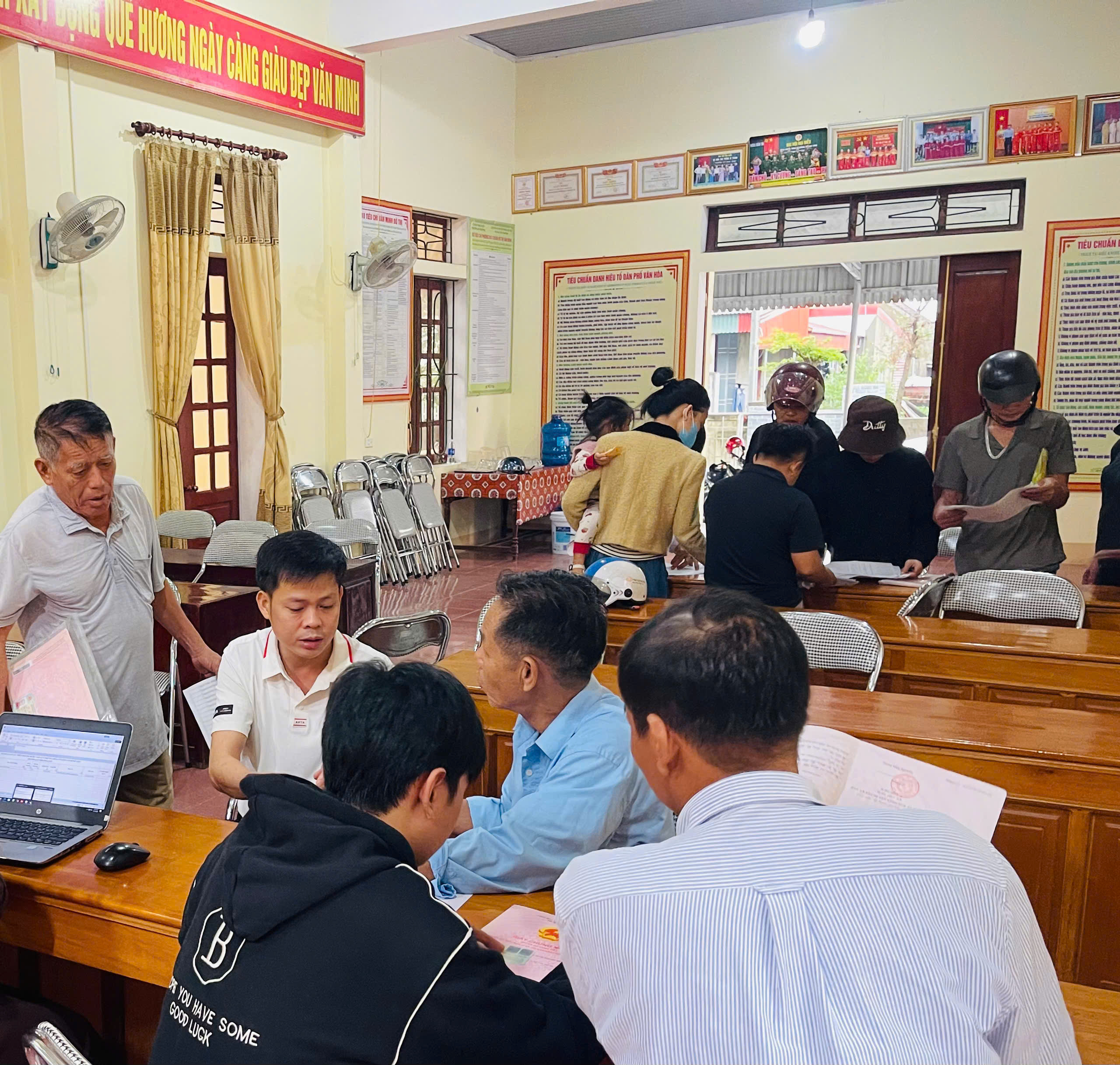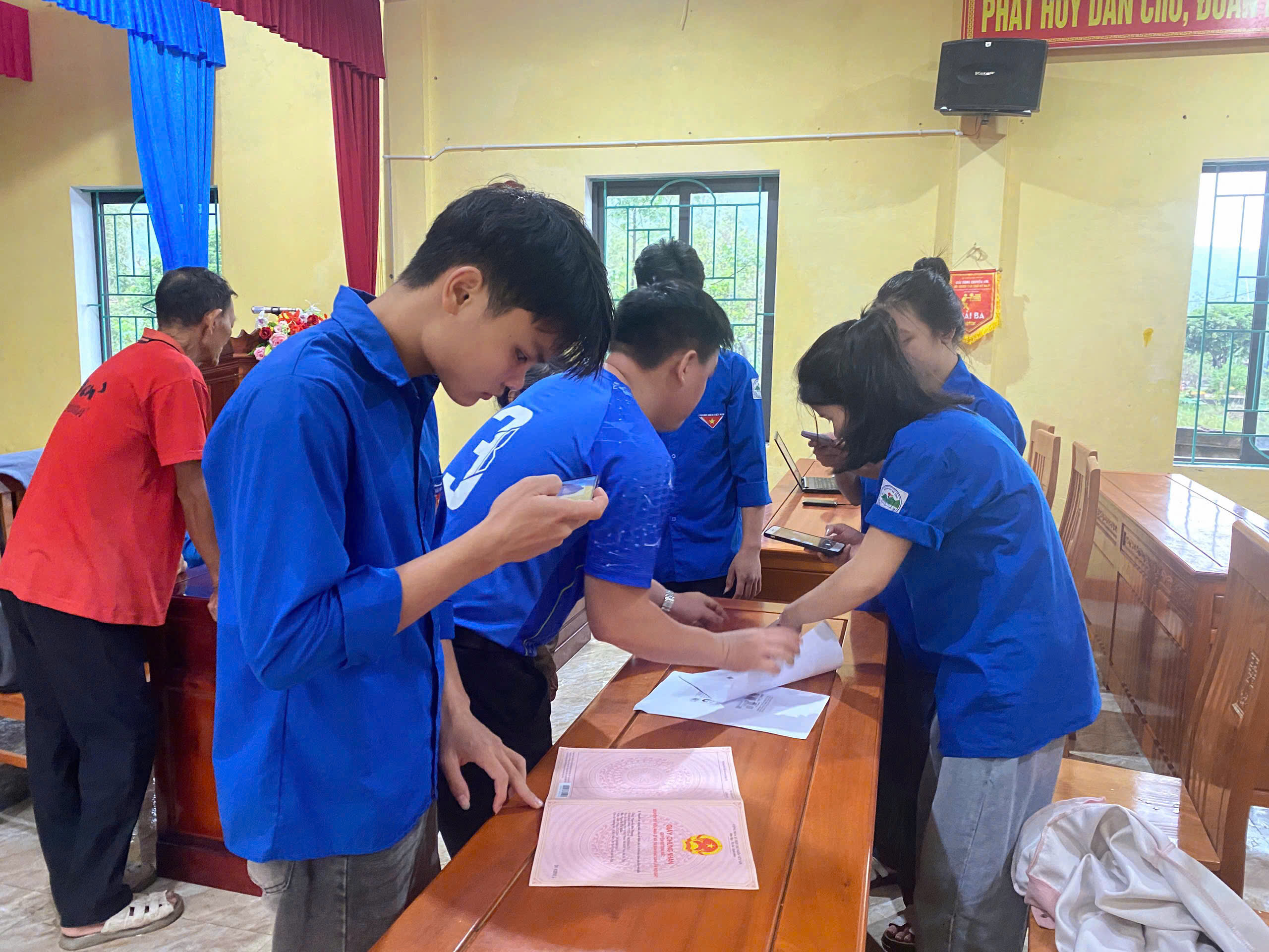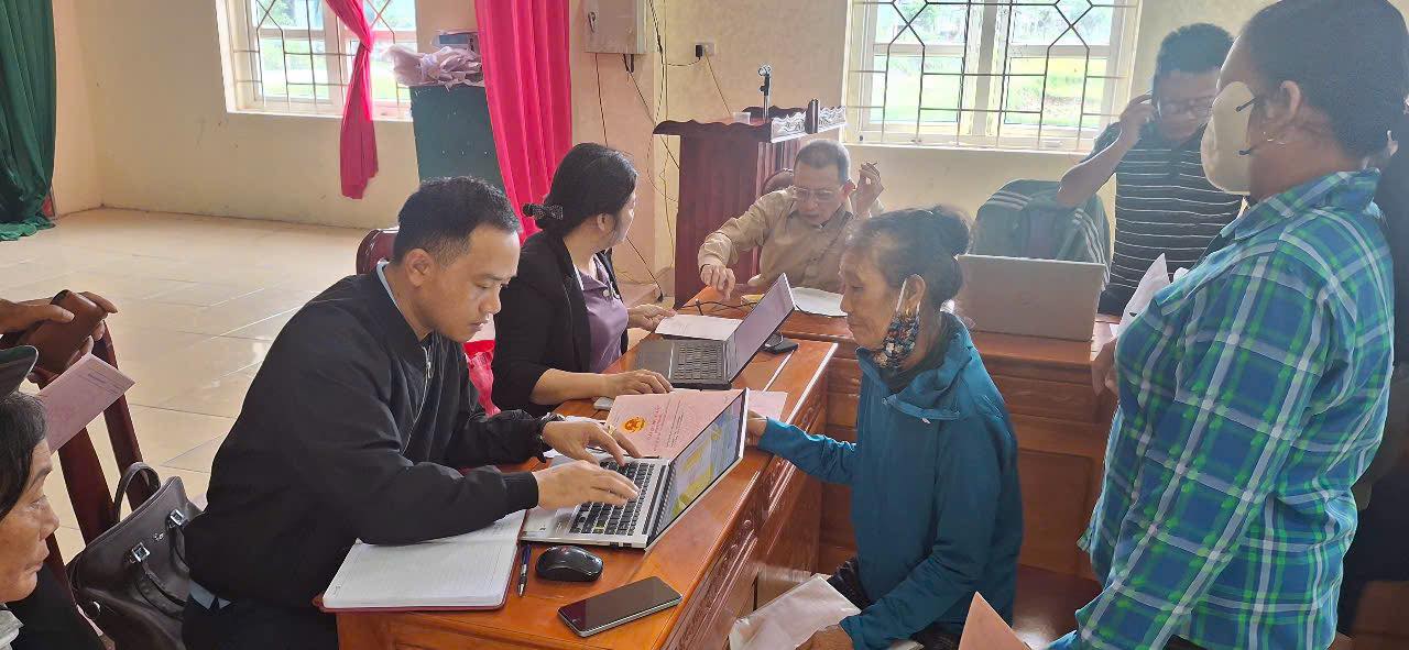 • Cán bộ, công chức trực tiếp đến từng nhà, đặc biệt là các hộ gia đình gặp khó khăn sau lũ, để kiểm tra, hướng dẫn thu thập các giấy tờ liên quan như Giấy chứng nhận quyền sử dụng đất (Sổ đỏ) và Căn cước công dân.