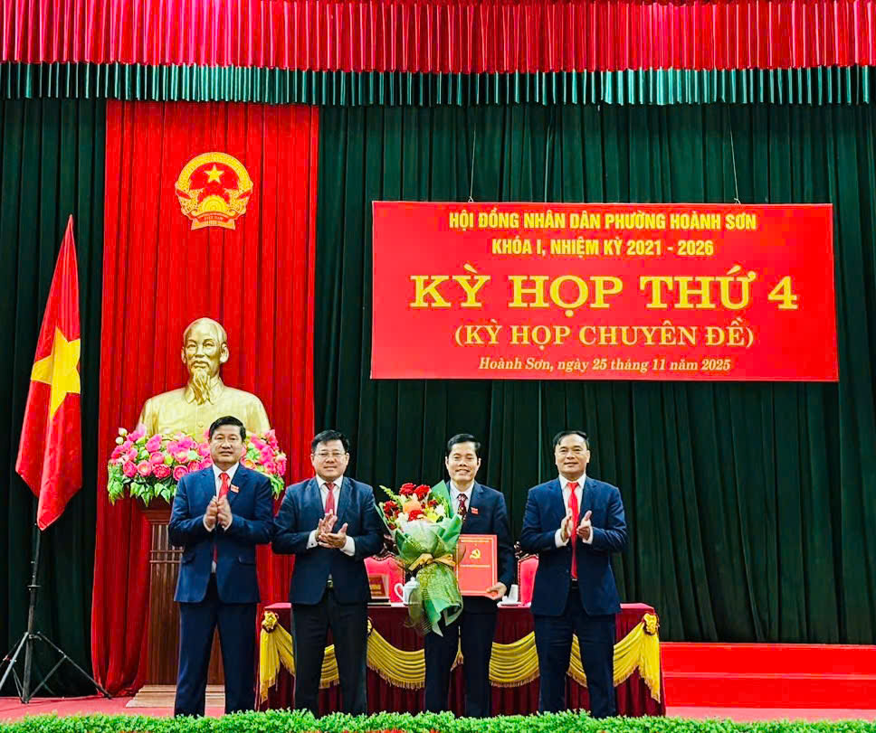 Kỳ họp đã công bố Nghị quyết của Thường trực Hội đồng nhân dân tỉnh về công tác cán bộ. Theo đó, ông Nguyễn Quốc Hương - Bí thư Đảng uỷ phường được chỉ định giữ chức vụ Chủ tịch HĐND phường Hoành Sơn khoá I, nhiệm kỳ 2021 - 2026.