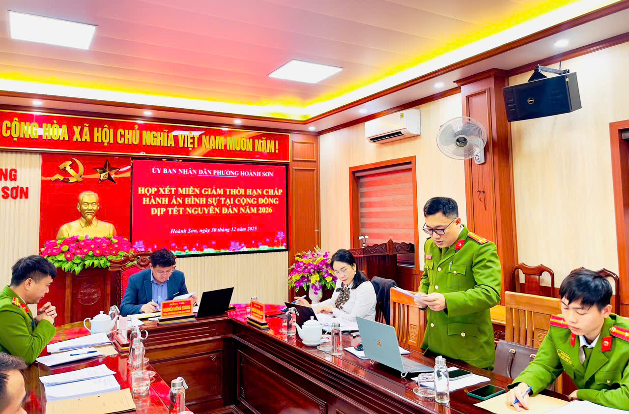 Tại hội nghị, đại diện Công an phường đã báo cáo tình hình theo dõi, giám sát việc chấp hành án của các công dân trong thời gian qua; đánh giá quá trình rèn luyện, ý thức chấp hành pháp luật, việc thực hiện các nghĩa vụ theo quy định, đồng thời đề xuất mức miễn, giảm thời hạn chấp hành án đối với từng trường hợp đủ điều kiện theo Luật Thi hành án hình sự.